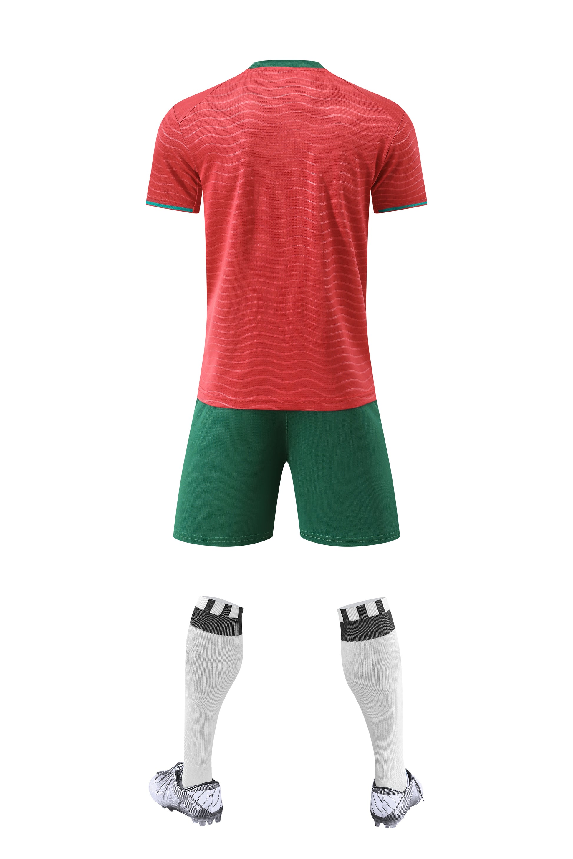 Den röda designen med gröna detaljer symboliserar nationens styrka och stolthet på planen.