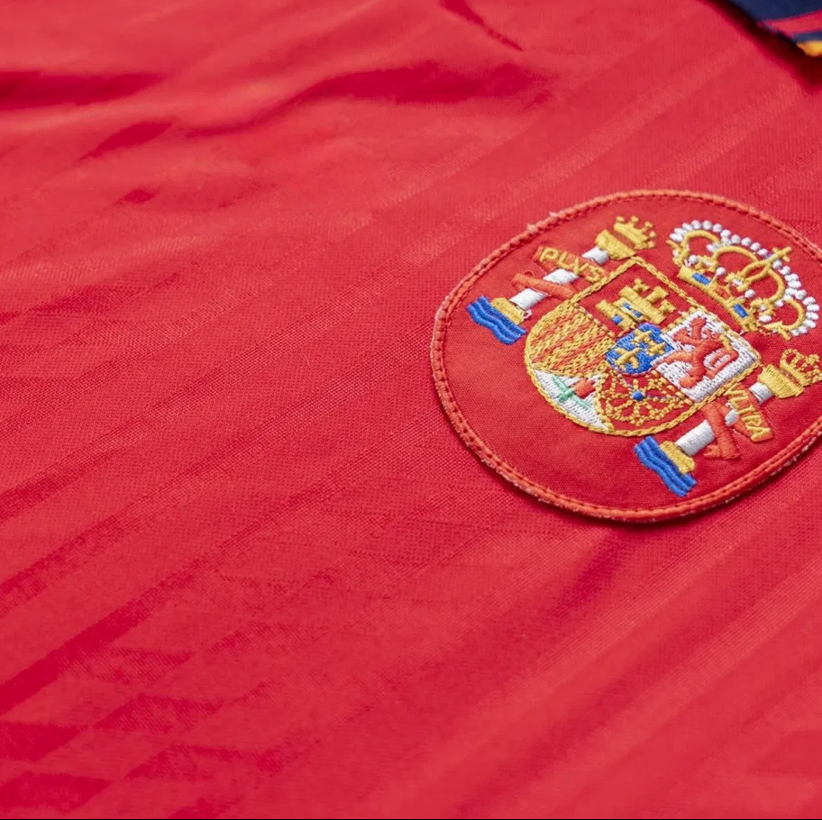 Tröjan är inspirerad av Spaniens officiella hemmatröja från 1994 och är prydd med det klassiska spanska landslagsmönstret. Den djupa röda nyansen kompletteras med gula och blåa detaljer som framhäver landets emblem, vilket ger ett stilrent och sportigt utseende.